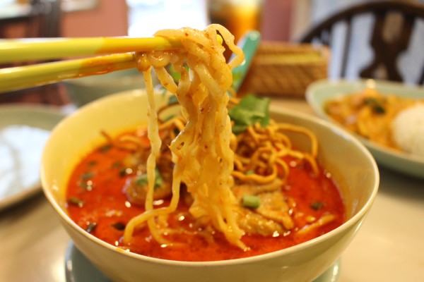 “We found this place, which was a really old house, and completely rebuilt the interior in the spirit of a contemporary cafe in Chiang Mai,” said Ms. Kinoshita. It’s very comfortable and colourful, with Thai pop music drifting from the speakers. When Mr. Namket starts cooking, the smells wafting from the kitchen set our tastes buds tingling in anticipation.