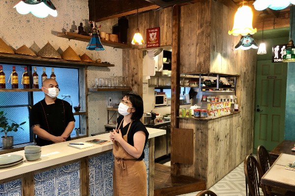 The comfortable, stylish interior was designed by the talented Ms. Kinoshita, who met her future husband Mr. Namket when both were working in the New Zealand town of Wanaka. “I was working in a cafe and he was cooking in a Thai restaurant in the town. We lived there for several years before moving back to Japan in 2018. My former employer has a cafe in Kiyosumi-shirakawa where I found work, while my husband worked in a local Thai restaurant. We decided to open our own place here last year as we wanted to experience running a restaurant in Japan.”