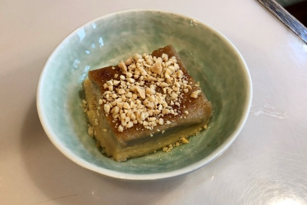 Not only does Makin offer wonderful Thai starters and main courses, it also has desserts, imported directly from the country itself. There’s coconut pudding, coconut ice cream and the rare khanom mo kaeng, a baked pudding cake made with taro (500 yen). This was delicious, a cross between a flan and a baked egg custard, flavoured with coconut, nutty and sweet. Which is a good thing after the spicy, strongly flavoured dishes that preceded it!