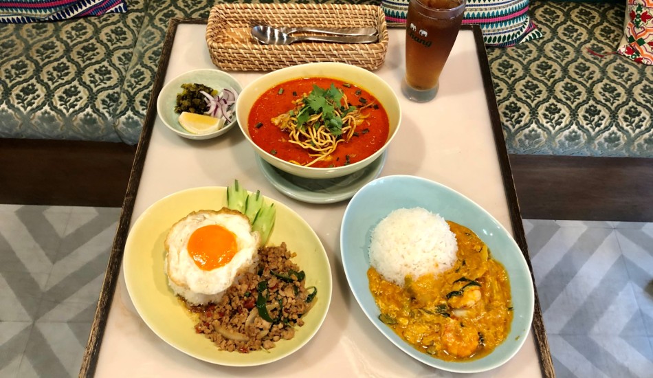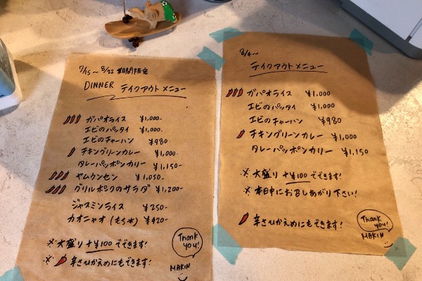 As of the beginning of September 2021, Makin is open only for take outs. Lunch is from 11:00 to 14:00, Wednesday to Sunday, with dinner from 17:00 to 20:00, Thursday to Sunday. The dinner menu is slightly larger but such favourites as gapao rice, pad thai, chicken green curry, taley pad pong curry, and shrimp fried rice are available at both times. Popular Isan dishes from Mr. Namket’s home area such as grilled chicken (gai yang), papaya salad (som tum), and minced chicken with chili, mint and basil (larb gai) are also available.