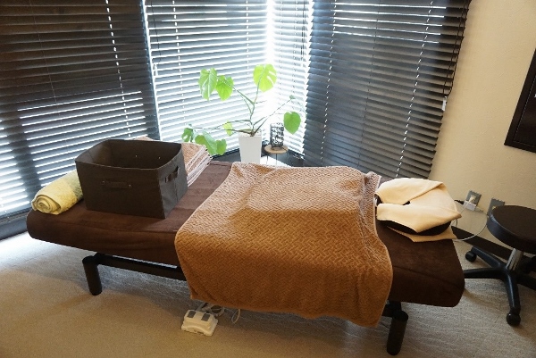 The atmosphere on entering the salon is at once both calming and friendly, with its brown and cream décor, a strategically-placed large leafy plant, the aroma of o-kyu (moxa sticks), and in the background the sound of Hawaiian singers accompanied by the twanging of ukulele. Just the thing to put a person in the right frame of mind.