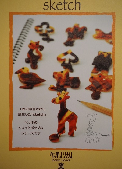 In keeping up the family tradition, bekko isogai has taken a sketch by Mr. Isogai’s teenage  daughter and used it as the basis for a series of cute and affordable tortoise-shell brooches called, appropriately, “sketch”.