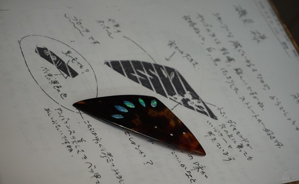 The items crafted by the Isogai family include traditional objects, such as kanzashi (ornate hairpins), which enhance the hair style and complement the elegance of any kimono wearer. Some of these beautiful items also incorporate blue lacquered mother of pearl or tonbo dama (colourful glass beads).
