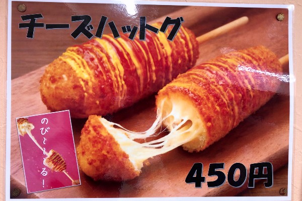 The Chang Foods version of the cheese hot dog (hatogu) is a big seller too at 450 yen.