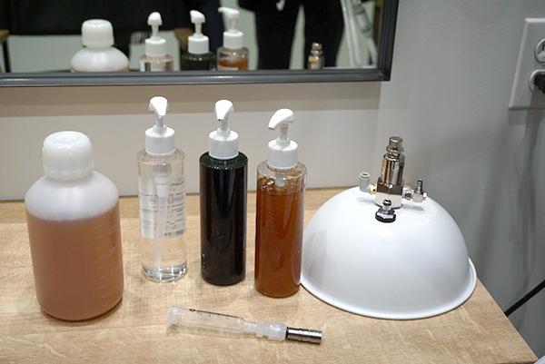 With Lift Up, what looks like an instrument from the Scientology movement or a version of the Sorting Hat from Harry Potter, but is in fact a machine developed in hospitals for use in treating alopecia, is placed on the client’s head. When this crown-like object is connected to the power unit, air and cleansing liquid are pumped through pipes to stimulate the skin and remove dirt from the scalp.