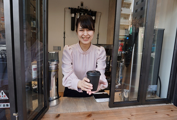 Taking precious time off from his work, he explained to us the concept of the new salon. Unlike the Ojima establishment, which offers regular cuts, perms, and colouring, the Kameido salon focuses on hair and scalp care. And, building on the practice of offering a cup of coffee to while away the time whilst the customer’s perm is setting, the salon has opened a counter selling takeaway cups of freshly-ground coffee to passers-by.