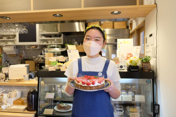 Youthful owner Ms. Miura, seen here with one of her signature fruit tarts, has studied the centuries-old art of Japanese haute cuisine known as kaiseki ryori to the level of holding an instructor’s qualification. “I wanted to create a comfortable, relaxing space where people could enjoy some tasty food that would bring a smile to their faces,” she said.