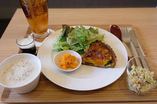 For those with smaller appetites, there’s a lighter version available as a “morning” set available all day for 650 yen. The quiche is also available as an individual dish or to take out at 540 or 530 yen respectively.