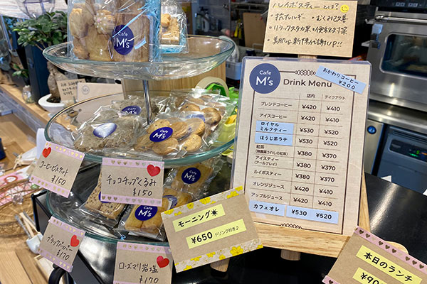 Cafe M’s is equipped with a projector that can project video onto the large white wall opposite the counter area. On the day we visited a soothing film of greenery and beaches heightened the comfortable atmosphere. The cafe can be rented in its entirety by groups over eight in number. Please ask Ms. Miura for more information.