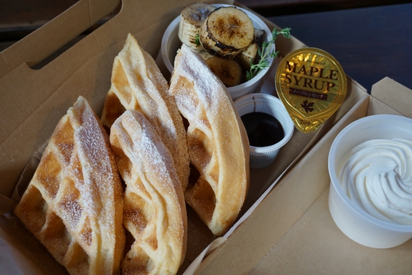 Where the waffles do come into play is in the Take Out service provided by the diner. The Okis make their homemade waffles to be picked up by Uber Eats or individual customers; all that is required is to call ahead 20 minutes beforehand so the waffle mixture can be prepared and the waffles are hot and ready when the customer arrives.