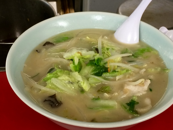 In around two minutes flat, a steaming hot bowl of tanmen noodles appears on the counter.