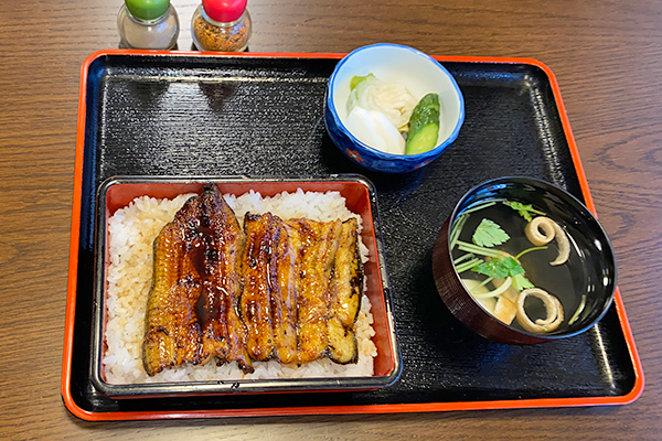 Unaju (Matsu course) is priced at 3,300 yen with eel liver soup and pickles, a real downtown price.