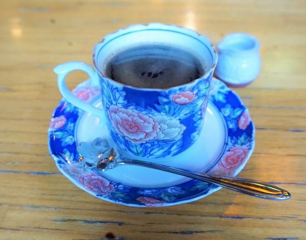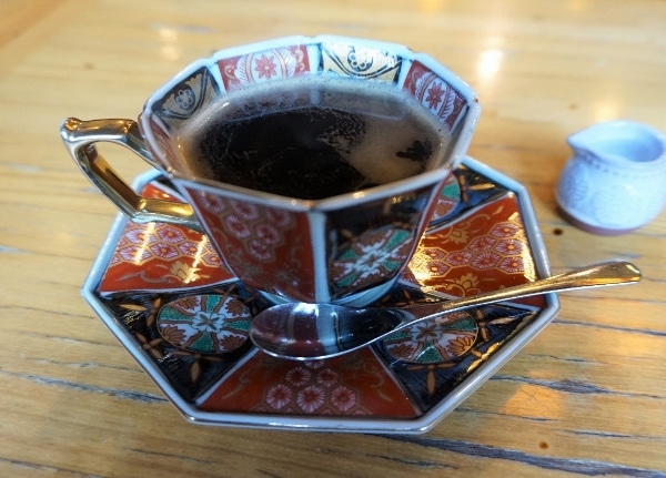 When he set up shop, Mr. Kondo was having nothing to do with paper or plastic cups. Only the best would do, and Coffee Dojo Samurai’s coffee is served in beautiful porcelain and china cups and saucers bearing famous names such as Narumi and Wedgewood. Each cup is different and Mr. Kasuga reckons that at any one time there are 130 individual cups and saucers on display. Staff choose a cup and saucer which they consider a customer will like; alternatively, a customer can choose one he or she admires.