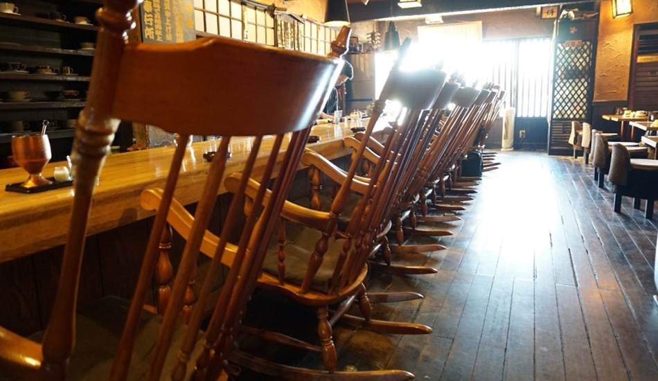 And the rocking chairs? After much research as to how to differentiate his coffee shop, Mr. Kondo hit upon the idea of providing rocking chairs in which his customers can sit and relax whilst sipping their coffee. I was concerned that it would be easy to spill the coffee whilst rocking backwards and forwards, but it is not so, and makes for a unique selling point. In fact, Mr. Kasuga told me that when a rocking chair becomes free at the long counter there is often a polite rush by those seated at the regular chairs and tables to grab the vacant seat.
