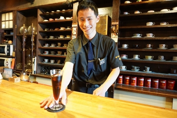 The prices are reasonable: the original blend hot coffee costs 430 yen, iced mizu-dashi coffee costs 430 yen and hot mizu-dashi 450 yen. Coffee Dojo Samurai also has its own speciality coffee, which is roasted on-site and is changed every 3 to 4 months. The current brew uses Ethiopian beans and costs 550 yen. Mr. Kasuga emphasised that all coffee is prepared and heated only after an order is taken, to ensure that the taste reaching the customer’s palate is fresh.