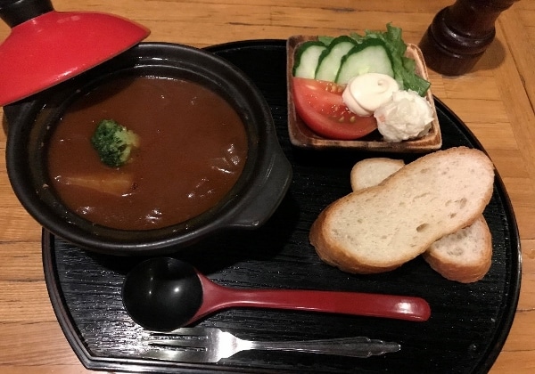 And to accompany the various coffee drinks available, there is an assorted menu reflecting the shop’s long opening hours. The Morning Set, consisting of two slices of toast and a mini salad, is excellent value at 100 yen. At lunch time there is a selection of toast sets with blend, American or iced mizu-dashi coffee for 780 yen. There is also a selection of light snacks and dishes – my Japanese fellow writer advised me that the 800-yen beef stew is well worth trying.