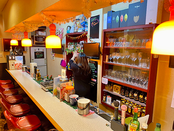 Most snacks tend to be located in bustling downtown areas or near stations Pub Soleil, on the other hand, is in a residential area so the customers are mostly locals, middle-aged and above, including career women who can relax, discuss work, enjoy a drink, and karaoke.