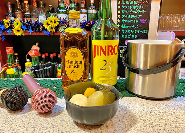 Snack bars, or sunakku as they are properly called, are small drinking establishments managed by a mature female proprietor known as Mama, who pours the drinks, chats, and sings karaoke with the clientele. Pub Soleil is a friendly, comfortable snack in the Kitasuna area of Koto-ku, as we discovered on a recent visit.