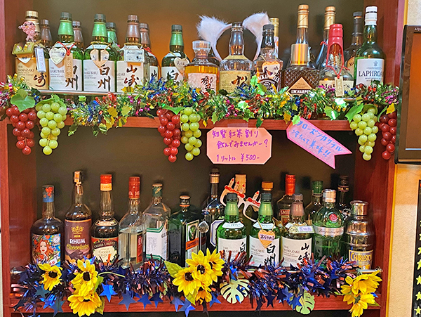 Men pay 4,000 yen which brings ice, mixers, and snacks, but doesn’t include booze, which is purchased separately by the bottle. This is the famous ‘bottle keep’ system, where individual bottles featuring the name of their owner sit on the shelves waiting for his or her return. With your own bottle on the shelf and a friendly welcome guaranteed, the snack becomes a kind of second home, a place to relax and unwind.