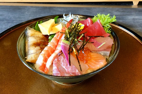 The top-selling item on the Maguroya Kaoruchan menu is this chef’s selection seafood bowl (omakase kaisendon). Available at both lunch and dinner, the ingredients vary slightly depending on the season but are all totally fresh, as Mr. Yamasaki selects the fish from two local markets using his considerable experience. Usually. the bowl features between seven and ten kinds of fish and seafood. The lunch set comes with a bowl of miso soup and a small dish of vegetables or pickles. At just 1,000 yen including tax this represents incredible value and frequently sells out!