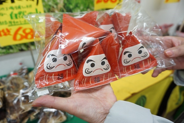 And to complete Sanchoku Shop Asano’s list of unusual products: daruma doll-shaped packets of boiled sweets. Not what you normally expect to find in a greengrocer’s, but again Sanchoku Shop Asano is not your usual greengrocer.