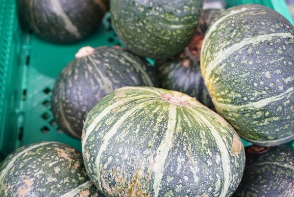 Looking over the displays I could see trays of green peppers, Japanese giant radishes, potatoes, mild green chilli peppers, boxes of tomatoes,