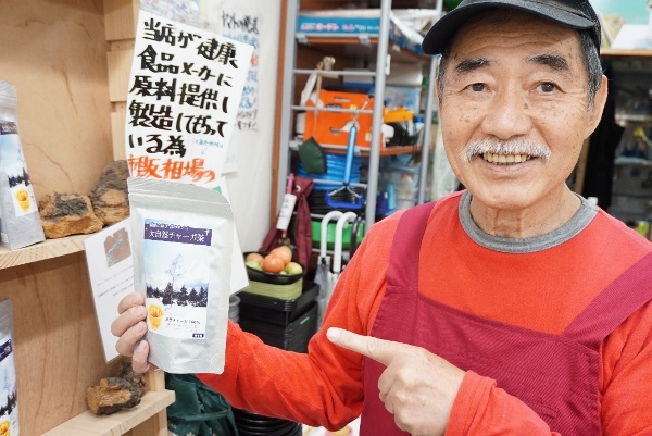 Ousuke-san proudly showed me another exotic item: Chaga tea, made from a mushroom which grows on the trunks of birch trees in Siberia. Supposedly having medicinal benefits, the fungus is processed and made into tea and imported from Russia. According to Ousuke-san the drink is pleasant and tastes just like Japanese tea.