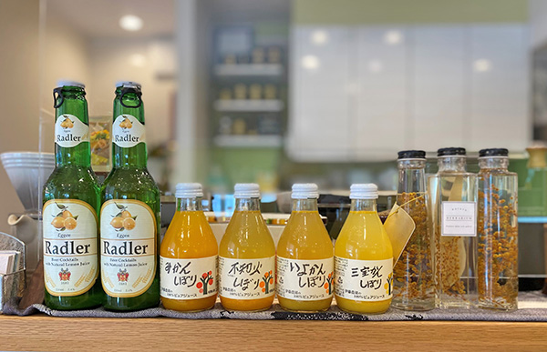 The drink menu is extensive, featuring the low-alcohol lemon beer Radler and a selection of pure citrus fruit juices from Wakayama Prefecture. The very popular range includes mandarin orange (mikan), dekopon and iyokan (all 660 yen each).