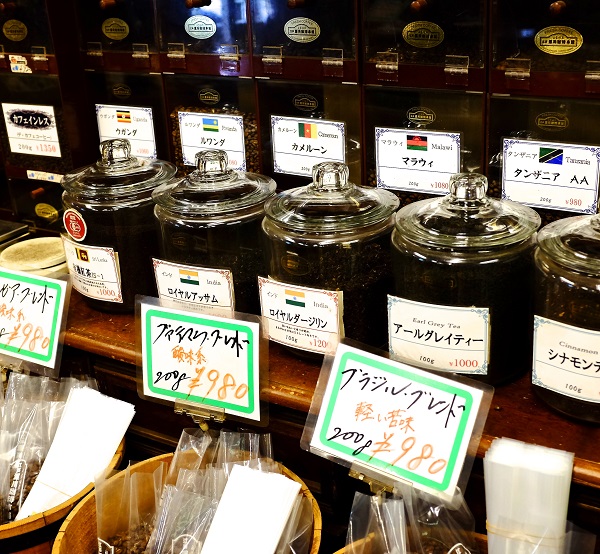 Mr.Yamaoka worked for a major coffee roaster before establishing his own business in 1997. He has two classes of customers; professionals who buy beans for re-sale, and locals who buy beans for personal use, and who often stop in for a cup of his blended coffee. And beans he has, from 62 countries. When customers buy his beans they get a lecture about the proper temperature of water to use and how to best serve that particular blend.