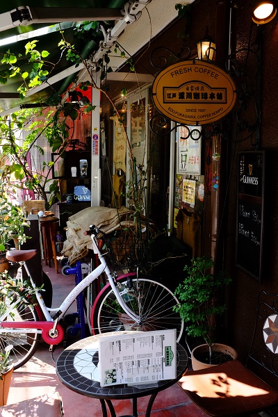 Mr. Yamaoka has been in the coffee business for 50 years, and he has been roasting his own coffee beans for some 40 years. So the only things that are green here are the un-roasted coffee beans and the plants on the verandah.