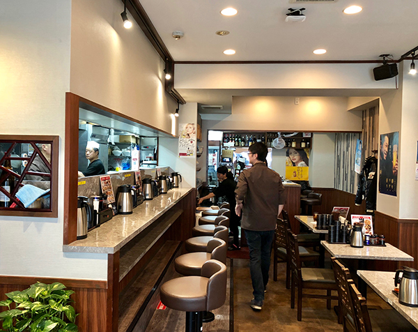 The lunch menu features a selection of such Chinese favourites as spicy ma-po tofu, pork and peppers (chinjao rosu), pork and cabbage in miso sauce (hoikoro), and sweet and sour pork (subuta). Eifukuki is rightly famed for its gyoza and soup-gyoza, which can be ordered as a main lunch or added to a lunch set for the modest addition of 300 yen.