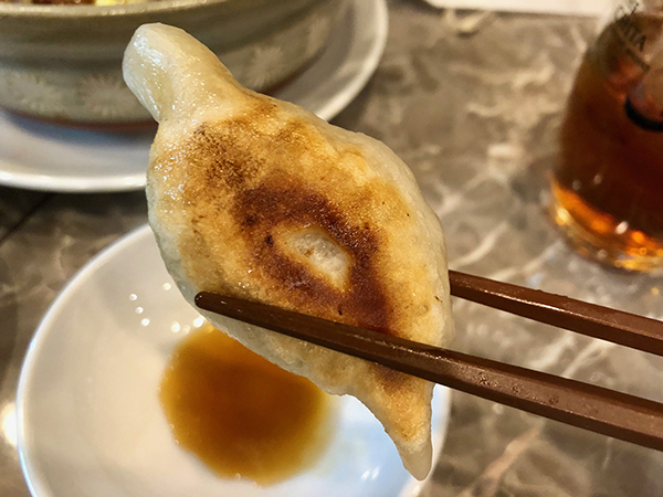 The renowned Eifukuki gyoza is crisp and garlic-free so it can be safely eaten for lunch. Handmade from scratch, the gyoza contains only pork, shrimp, and Chinese chives (nira). A bowl of spicy noodles and a plate of crispy gyoza is the top lunch pairing at Eifukuki Kiba.