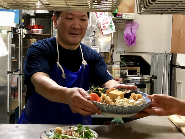 Located just a hundred metres or so south of the frenetic traffic on Eitai Street near Monzen-nakacho station, the Botan area has a sleepy, nostalgic atmosphere which may result from being hemmed in by canals and a water park on three sides. “It’s a really nice place, full of friendly people,” says Ms. Hoshiba. “We feel happy to be here.” After working with Mr. Jinbo in another restaurant for several years, they decided to become independent and took over Jinnosuke in October 2019.