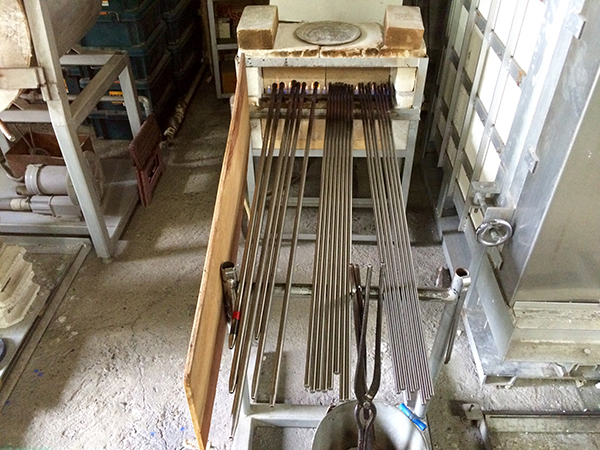 The tubes need to be preheated, ready for use. “We use different rods for making various kinds of objects. Each student can use a couple.”