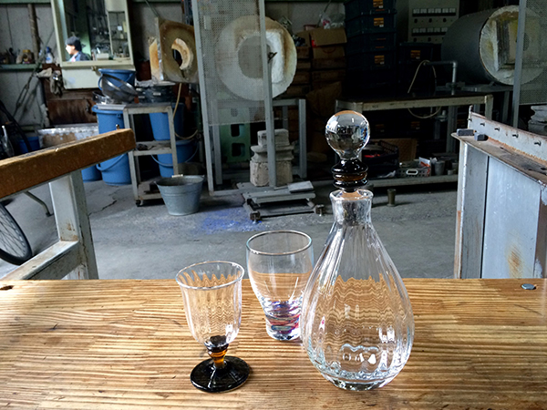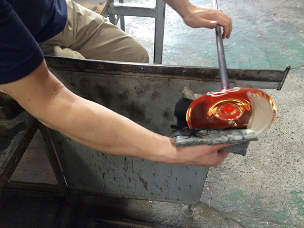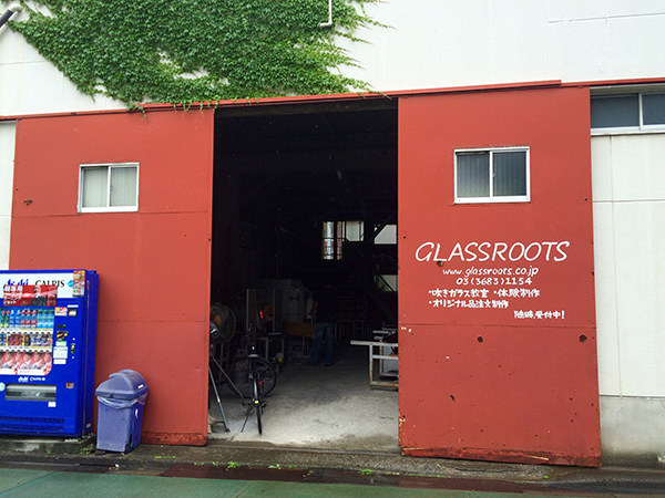 Located on a quiet backstreet midway between Kameido and Ojima Stations in what used to be an ironworks factory, the bright red door of Glassroots is easy to spot. Inside is a cavernous room that smells, not unpleasantly, of oil and heat. In the middle of the room two figures work quietly and intently at the benches, creating their latest pieces.