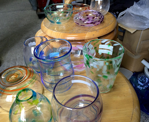 “We make our own pieces in the morning on Mondays, Tuesdays and Wednesdays,” says Mr. Kumagaya. “We make all kinds of glassware, including a lot for Edo Kiriko (traditional Japanese cut glass). The Koto-ku area is one of the homes of traditional glassmaking in Tokyo. In the afternoons and evenings, we have classes. We’re very busy with our own work and running the classes; students come from all over Tokyo and surrounding areas such as Chiba.”