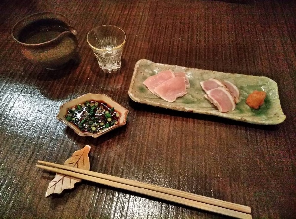 “Please enjoy it with our homemade ponzu (citrus soy sauce). Today we have breast meat and thigh-tataki, which has been smoked with charcoal.”