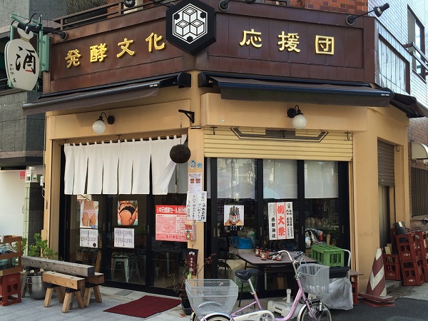 The story of Winning Luck Beer is the story of man’s triumph over adversity. Located on a corner of the approach road to Katori Shrine, a few minutes’ walk north of Kameido Station, we find the bar and nomiya (Japanese drinking house), Hakko Bunka Oendan (Fermentation Culture Supporters) and its proprietor, the “winning luck man”, Satoru Kirekawa. “Fermentation is the basis of Japanese seasonings such as soy sauce and mirin (sweet rice wine), miso (fermented bean paste) and so on. Sake (known as “nihonshu” in Japanese) is also fermented and as such represent the highest level of fermentation technique in the country. I mainly sell sake here and wanted a striking name as part of the local revitalization project.”