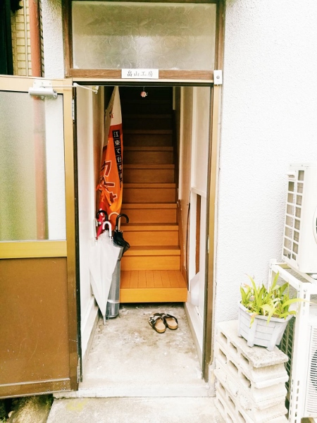 Mr. Hatakeyama’s studio is located on a small street between Sumiyoshi Station and Sarue Onshi Park. After entering through the discreet doorway, don’t hesitate to climb up the wonderful wooden steps (don’t forget to take off your shoes!), which leads to the first floor of a small house. Here then, is the studio of Mr. Hatakeyama.