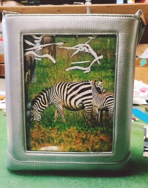 As soon as I arrived at his studio, Mr. Hatakeyama welcomed me warmly. “Ah, here you are! Come on, I would like to show you my latest creation!” He presented proudly to me a fashionable silver leather handbag with an acrylic glass panel, enabling the owner to insert their favourite picture.
