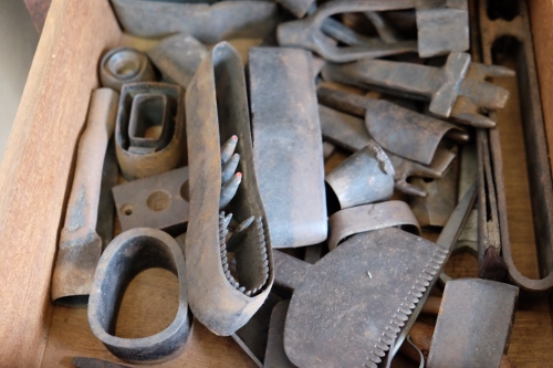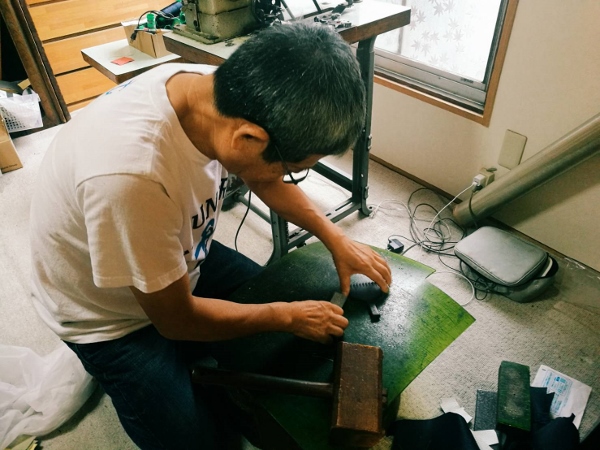 Mr. Hatakeyama learned the basis of leather handcraft from his parents. “My parents worked at home. They made randoseru.” The randoseru is a traditional Japanese school leather bag used by elementary schoolchildren. He still possesses his parents’ old tools but doesn’t use them anymore.