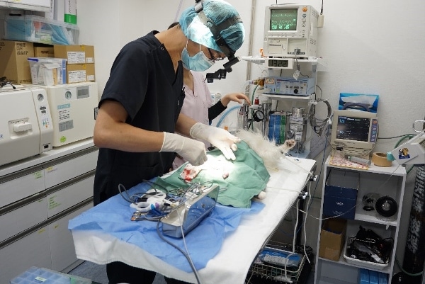 Taking advantage of this, once the surgery was complete, Doctor Kitamura took the opportunity to also clean Bark’s teeth with a high-powered jet and dental scaler; both of which would not be out of place in a dentist’s surgery,