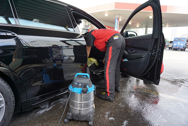 And in this age of rising petrol and diesel prices, combined with the growth of hybrid fuel cars, just selling petrol is not enough. To differentiate itself, Usami Shin-kiba offers a quality car wash by hand. The basic service, priced at 2,200 yen and taking about 20 minutes, does not skimp on care and effort to deliver a sparkling clean car.