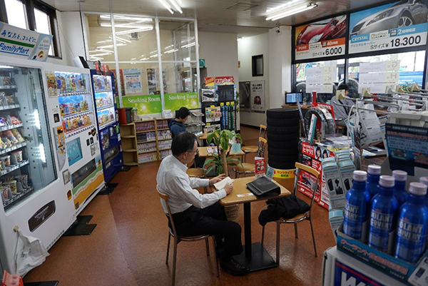 In another move away from relying solely on pumping petrol, Usami Shin-kiba acts as an agency for a car rental company, Carsta (Car Life Stadium). According to Mr. Kawane, the busiest time is at weekends when families rent a car to travel out of Tokyo. And just to make life that bit easier, customers can cycle to the service station to pick up the rental car and leave their bicycle there until they return. How about that for value-added service?
