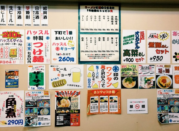 Near Kameido Station, my steps led me to a famous ramen noodle restaurant called “Hustle-Ramen Honma Kameido Branch”. This shop opened 23 years ago and is really popular in the neighbourhood.