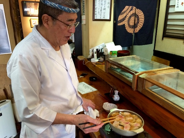 A large photograph of popular television personality Terry Ito adorns the front of the restaurant. When I ask why, Mr. Oyama says, “We were at school together, both junior and senior high school. We’re the same age and were in the same class. He’s from Tsukiji. He sometimes drops in to eat the tuna hot pot.” In fact, Mr. Oyama and his wonderful food have been featured on Japanese television some 20 times, countless more times in domestic magazines and newspapers, with media from as far away as Thailand and Singapore coming to interview him.