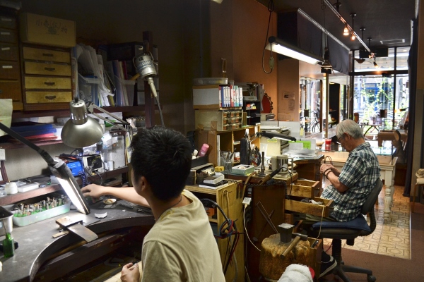 First, everything in the store is handmade by father-and-son pair Akiyoshi and Shinichi Sashou. Second, Sashou’s work extends far beyond simply making elegant jewelry.