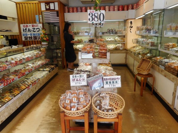“It’s the hardest as far as we know!” says third-generation proprietor, Mr. Ueda. There are several categories of sembei, and genkotsu belong in the “okaki” genre—these are sembei made from mochi (sticky) rice. They tend to be harder in texture, but also have that sweet rice aftertaste and an addictive bite. (I personally love extra-crunchy okaki!)