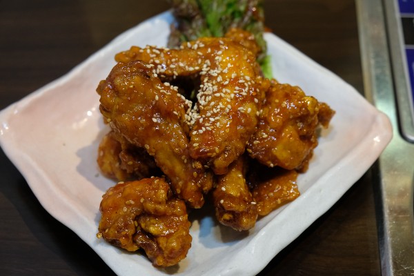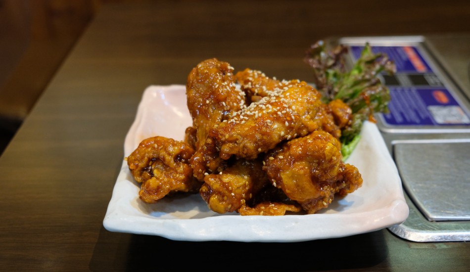 Mr. Kinoshita whipped out a plate of the wildly popular Yangnyeom chicken. It’s a sweet, sticky, and spicy double fried delight, flavoured with Gochujang chili sauce, garlic, red pepper, soy sauce, brown sugar, and more. This version is terrific, one of the best I’ve eaten. A small plate like this is 1,078 yen including tax, while a large size is 1,980 yen. Despite the small serving title, it’s a hearty portion and very filling. Tasty!