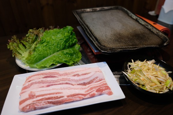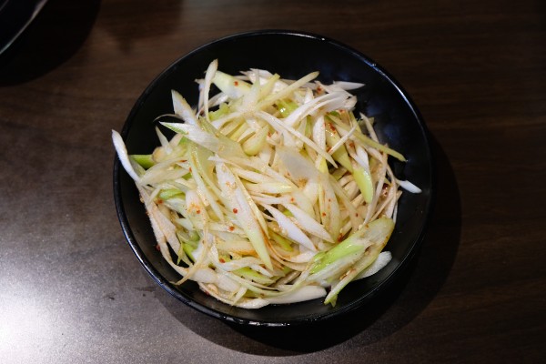 As Mr. Kinoshita had said, the menu is enormous at Ishiyaki Bibimbap House Kameido, encompassing the gamut of Korean food from bibimbap to yakiniku, via perennial favourite samgyeopsal. Thick cut Japanese pork, sangchu lettuce wraps and a sharp negi onion salad complete the set. The meat is cooked on the grill pan set at an angle over the gas burner so the excess fat drains down to the runnel at the bottom.